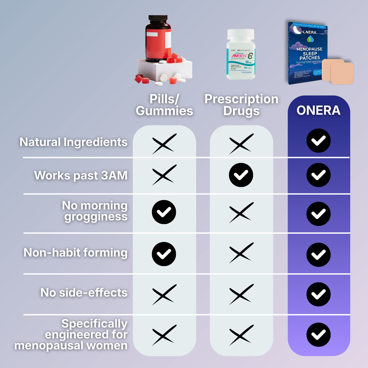 Other sleep supplements wear off by midnight, keeping your 3 AM wake-ups alive. ONERA works differently - delivering steady, all-night support directly through your skin to keep you asleep through the cortisol spike.